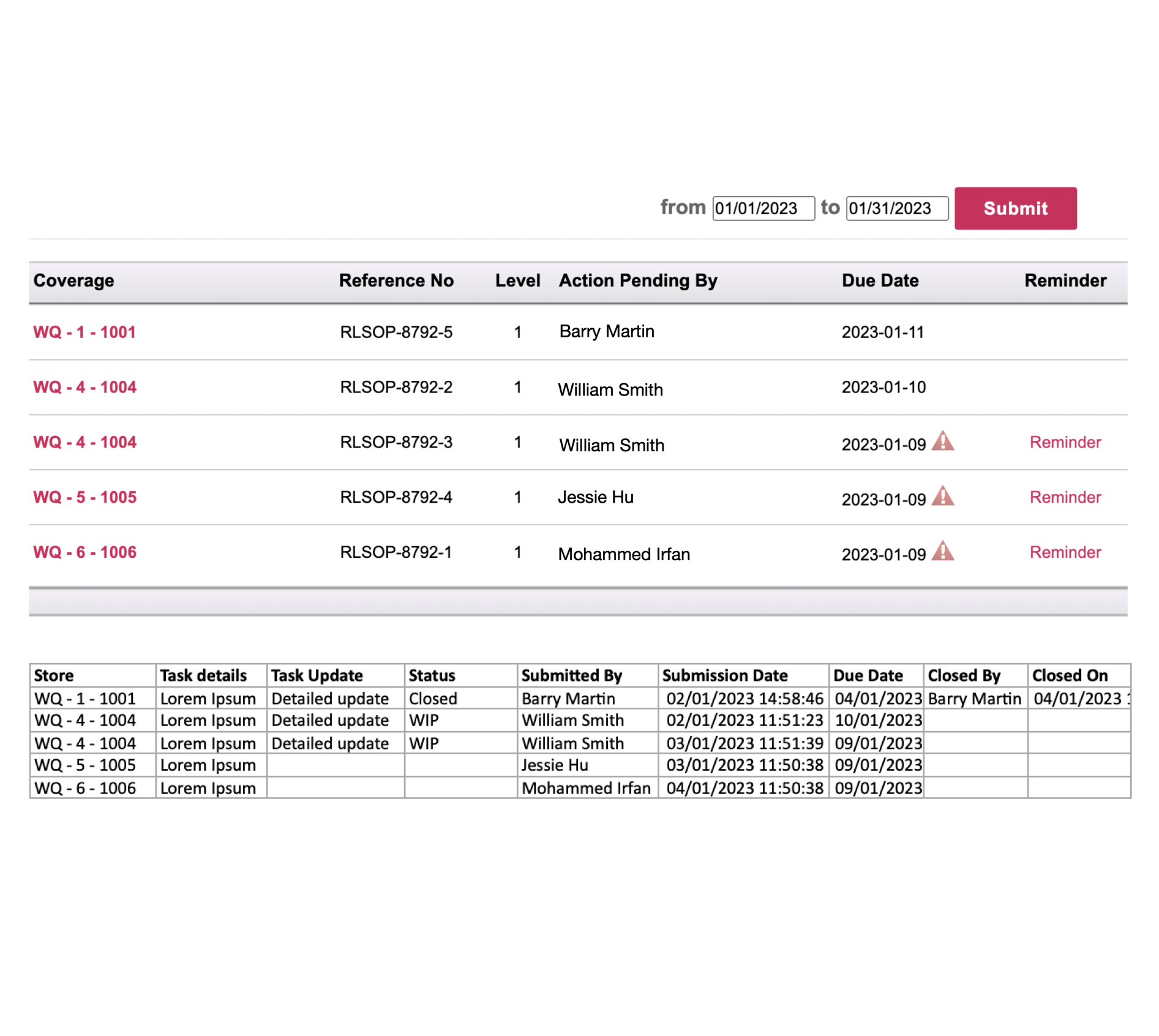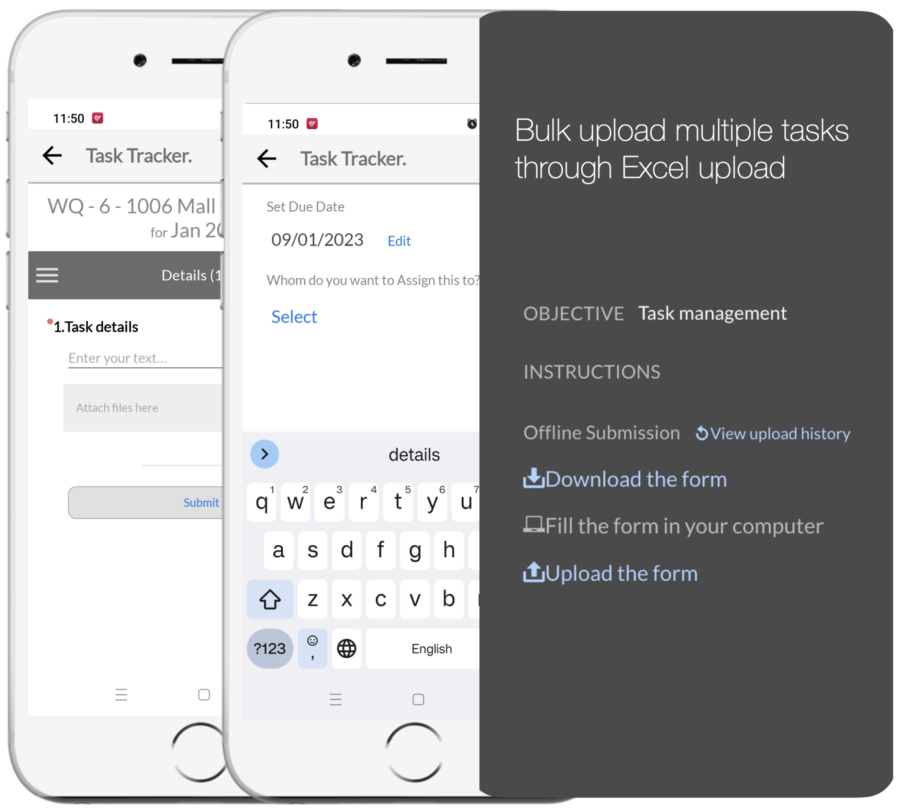 With the Wooqer Task Manager, assign tasks one by one or in bulk through an excel upload and track them all to closure. Get evidence of completion in form of pictures and/ or video. Enable closure on confirmation by assignee or customize flow to enable review by assignor before closure. Reminders and notifications around Due date enable timely completion or bring attention and timely intervention in case of delays. Generate an excel report or use the out of box Wooqer Dashboards for insights.